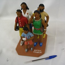 ARTESANATO / ESCULTURA (20X15 CM) CONFECCIONADO EM ARGILA, REPRESENTANDO UM GRUPO DE PESSOAS COM APETRECHOS DE TURISTAS (FILMADORA E BOLSAS). NA BASE, DE MESMO MATERIAL, NOME DO ARTISTA 'MANUEL EUDÓCIO'.
