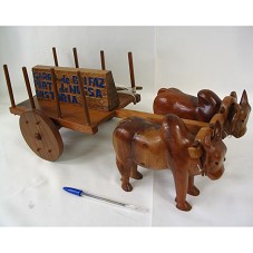 ARTESANATO (18X45X19 CM) CONFECCIONADO EM MADEIRA, REPRESENTANDO UM CARRO DE BOI, COM DOIS ANIMAIS PUXANDO A CARROÇA. POSSUI A INSCRIÇÃO 'LEMBRANÇA DE RECIFE'. ACONDICIONADO EM CAIXA (20X54X23 CM) DE MADEIRA, COM UMA FOTOGRAFIA DO ARTESANATO NA TAMPA.