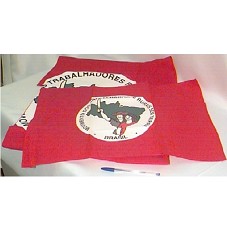 DUAS BANDEIRAS DO MOVIMENTO MST, NA COR VERMELHA. A PRIMEIRA (100X100 CM), COM O EMBLEMA DO MOVIMENTO PINTADO DOS DOIS LADOS, POSSUINDO EM UMA DAS EXTREMIDADES COSTURA PARA COLOCAÇÃO DO MASTRO. A SEGUNDA (56X39 CM) É IGUAL A ANTERIOR.