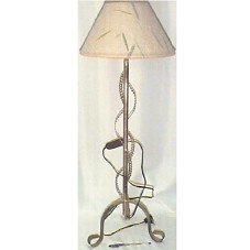 ABAJUR (81X31 CM) COM PÉ E HASTE EM METAL PINTADO DE DOURADO. BASE EM FORMATO DE TRIPÉ, POSSUINDO NA HASTE TIRAS COM FUROS, DE METAL, FAZENDO UM ZIG-ZAG ATÉ A CÚPULA. ESTA, FORRADA EM PAPEL RECICLADO, COM FIBRAS VEGETAIS, NA COR CREME. FIO E INTERRUPTOR NA COR PRETA.