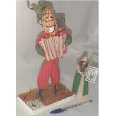ARTESANATO FEITO COM PALHA DE ESPIGA DE MILHO. O PRIMEIRO (8X15X31,5 CM) REPRESENTA UMA ESPIGA DE MILHO TOCANDO SANFONA, VESTIDA DE CALÇA, BLUSA, CHAPÉU, BOTA E LENÇO EM TECIDO VERMELHO, SOBRE UMA BASE DE MADEIRA (15X8X1 CM). NA BASE, UM PAPEL COLADO COM AS INSCRIÇÕES 'ARTESANATO FEITO POR: COOPERDEF - COOPERATIVA SOCIAL DAS PESSOAS PORTADORAS DE DEFICIÊNCIAS DE SC. TELEFONE: (049) 433.5175 / LEMBRANÇA DE XANXERÊ'. O SEGUNDO, UM ÍMÃ DE GELADEIRA, REPRESENTANDO UMA CAMPONESA (14,5 CM) SEGURANDO UMA ENXADA, COM VESTIDO VERDE E LENÇO NA CABEÇA. LEVA O MESMO PAPEL INFORMATIVO QUE O ANTERIOR. ACONDICIONADOS EM SACO PLÁSTICO, DENTRO DE UMA CAIXA DE SAPATO (20X32X11 CM), COM A INSCRIÇÃO 'TÊNIS FERMA'.