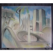 QUADRO (99,5X119,54 CM) SEM MOLDURA. POSSUI PINTURA EM SPRAY, EM TONS DE AZUL, BRANCO, AMARELO, ROSA E GRAFITE, RETRATANDO MONUMENTOS ARQUITETÔNICOS DA CIDADE DE BRASÍLIA (PONTE JK, CONGRESSO NACIONAL, CATEDRAL, E OUTROS). NO CANTO INFERIOR DIREITO, ASSINATURA DO ARTISTA (NÃO IDENTIFICADO) E A INSCRIÇÃO 'PICASSO NÃO PICHAVA'.
