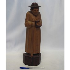 ESCULTURA (38,5 CM) ENTALHADA EM PEÇA ÚNICA DE MADEIRA, REPRESENTANDO O PADRE CÍCERO SEGURANDO UM CAJADO E UM LIVRO. POSSUI BASE, LIVRO E CHAPÉU DO PADRE EM TONS DE VINHO. NO FUNDO DA BASE, A INSCRIÇÃO 'EVERALDO / 2006'.
