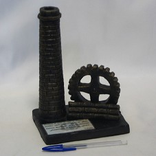 ARTESANATO (22X15,5X11,5 CM) CONFECCIONADO EM ARGILA, PINTADO EM MARROM ESCURO COM DOURADO, IMITANDO O BRONZE. REPRESENTAÇÃO DE UMA TORRE DE TIJOLOS USADA COMO CHAMINÉ, TENDO AO LADO, UMA RODA E ALGUMAS TORAS. FIXADA EM BASE DE MESMO MATERIAL, ONDE HÁ PLACA DE PAPEL PLASTIFICADO, CONTENDO A INSCRIÇÃO 'RECORDAÇÃO DE APREÇO AO EXMO. SR. PRESIDENTE DA REPÚBLICA LUIZ INÁCIO LULA DA SILVA / CÂMARA MUNICIPAL DE CEARÁ-MIRIM/RN / FRANCISCO ROBERTO DE LIMA / PRESIDENTE / 13.02.2009'. NA PARTE POSTERIOR DA BASE, A GRAVAÇÃO 'EDVALDO DE CEARÁ-MIRIM RN'.
