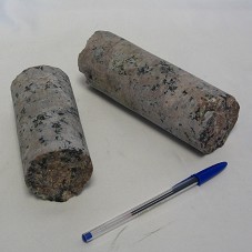 DUAS AMOSTRAS DE ROCHA DE GRANITO DO RIO MADEIRA - UHE SANTO ANTÔNIO (15,5X5,5 E 12X5,5 CM), DE FORMATO CILÍNDRICO, EM TONALIDADE RÓSEA E CINZA. ACONDICIONADA EM CAIXA DE COURO, NA COR MARROM. NA TAMPA, PLACA METÁLICA (6X10 CM) COM A GRAVAÇÃO 'ODEBRECHT / AMOSTRA DE ROCHA DE GRANITO DO RIO MADEIRA / UHE SANTO ANTÔNIO / SR-58 - PROFUNDIDADE: 8M'.