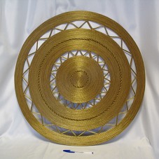 MANDALA (71X71 CM) CONFECCIONADA EM CAPIM DOURADO, COM MOTIVOS CIRCULARES E TRIANGULARES.