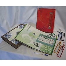 ÁLBUM DE FILATELIA CONTENDO A COLEÇÃO DE SELOS EM COMEMORAÇÃO AOS 29º JOGOS OLÍMPICOS EM BEIJING 2008. POSSUI ENCADERNAÇÃO SANFONADA, CAPA DURA E UMA PROTEÇÃO DE CAPA. ACOMPANHA CINCO MARCADORES DE LIVROS, COM DESENHOS E CORES DOS MASCOTES DAS OLÍMPIADAS, CONFECCIONADOS EM PLÁSTICO METALIZADO, CONTENDO MARCAÇÃO DE RÉGUA E LENTE DE AUMENTO NO MEIO. ACONDICIONADOS EM ESTOJO FORRADO DE PAPEL TRABALHADO COM PINTURAS CHINESAS, TENDO AO CENTRO, SÍMBOLO DAS OLÍMPIADAS DE BEIJING 2008.