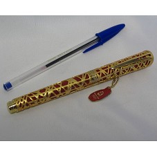 CANETA TINTEIRO (15 CM), COM PENA EM OURO 18K. POSSUI CORPO EXTERNO EM VERMELHO, COM APLICAÇÃO EM METAL DOURADO IMITANDO O REVESTIMENTO DO GINÁSIO 'NINHO DE PÁSSARO'. POSSUI A INSCRIÇÃO 'BEIJING 2008' E PINGENTE COM A LOGOMARCA DAS OLIMPÍADAS. ACONDICIONADA EM ESTOJO FORRADO COM PAPEL CONTENDO PINTURAS CHINESAS E SÍMBOLO DAS OLIMPÍADAS NA TAMPA.