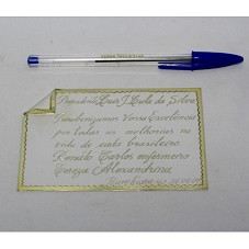 PLACA (8X12 CM) CONFECCIONADA EM PRATA FOSQUEADA, COM BORDA DOURADA, E UMA DAS PONTAS DOBRADA. POSSUI A INSCRIÇÃO 'PRESIDENTE LUIS I. LULA DA SILVA / PARABENIZAMOS VOSSA EXCELÊNCIA POR TODAS AS MELHORIAS NA VIDA DE CADA BRASILEIRO. RENATO CARLOS / ENFERMEIRO / TEREZA ALEXANDRINA / ITUMBIARA - GO / 24.04.09'. ACONDICIONADA EM ESTOJO (2,5X11,5X15,5 CM) FORRADO DE LYCRA AZUL MARINHO.