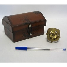 ESCULTURA (5,5X5,5X5,5 CM) EM BRONZE COMPOSTA POR UMA ESFERA VAZADA, COM LATERAIS CORTADAS, COM UM CUBO INSCRITO NELA. CUBO POSSUI UM CONE SAINDO DE CADA FACE. NA ESFERA, A INSCRIÇÃO 'INSTITUTO FEDERAL DE GOIÁS / CURSO DE MECÂNICA / CENTENÁRIO DA REDE FEDERAL 1909-2009 / HOMENAGEM AO PRESIDENTE LULA / ALUNO GERALDO ROSA DA MOTA'. ACONDICIONADO EM BAÚ (8X13X9 CM) CONFECCIONADO EM PAPELÃO, E COM PINTURA IMITANDO COURO.