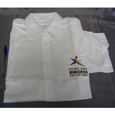 CAMISA EM TECIDO BRANCO, DE MANGA CURTA. NESTAS, BANDEIRA DO BRASIL E DO PIAUÍ BORDADAS. NA FRENTE, A INSCRIÇÃO 'FEIRA DOS MUNICÍPIOS / 2009 - PIAUÍ - BRASIL' E LOGOMARCA DO EVENTO.