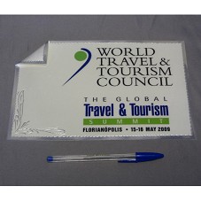 PLACA (17X25 CM) EM PRATA FOSQUEADA, COM BORDAS POLIDAS. POSSUI UMA DAS PONTAS DOBRADA, E A INSCRIÇÃO 'WORLD TRAVEL AND TOURISM COUNCIL / THE GLOBAL TRAVEL AND TOURISM SUMMIT / FLORIANÓPOLIS 15-16 MAY 2009', E LOGOMARCA. ACONDICIONADA EM ESTOJO FORRADO DE TECIDO AZUL MARINHO.