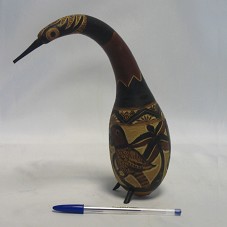 ARTESANATO (22,5 CM) CONFECCIONADO EM CABAÇA REPRESENTANDO UMA AVE. POSSUI CORPO ENTALHADO, COM DESENHOS DE AVES E PLANTAS.