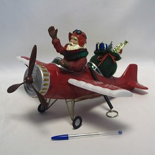 BRINQUEDO TIPO MÓBILE (19X33X35 CM). AVIÃO MONOMOTOR DE COR VERMELHA, COM O PAPAI NOEL PILOTANDO, E O SACO DE PRESENTES NO ASSENTO TRASEIRO. POSSUI MOLA E ARGOLA PARA PENDURAR EM TETO. AO LIGAR, TOCA MÚSICA, BALANÇA DE UM LADO PARA O OUTRO, ACENDE LUZ E RODA A HÉLICE. FUNCIONA COM TRÊS PILHAS TAM AA (RETIRADAS DO BRINQUEDO PARA NÃO OXIDAR).