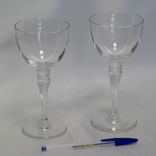CONJUNTO DE SEIS TAÇAS PARA VINHO (17,5 CM CADA) CONFECCIONADAS EM CRISTAL. POSSUEM BASE CIRCULAR E PÉ TRABALHADO. NA BASE, ETIQUETA COM NOME DO FABRICANTE. ACOMPANHA CARTÃO EM NOME DO AGENTE. ACONDICIONADAS EM CAIXA DE PAPELÃO AZUL, COM NOME DO FABRICANTE NA TAMPA.