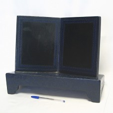 SUPORTE PARA LIVRO (33,5X40X20 CM) CONFECCIONADO EM MADEIRA PINTADA DE PRETO. POSSUI APLICAÇÃO EM AZUL EM TODA A BASE E NA PARTE POSTERIOR, COM FIGURAS DE ANIMAIS SILVESTRES, PÁSSAROS, BORBOLETAS E FLORES. NA PARTE ANTERIOR, ONDE A CAPA DO LIVRO É APOIADA, MOLDURA FEITA NO MESMO APLIQUE AZUL. NO CANTO SUPERIOR DIREITO, ASSINATURA DO ARTISTA 'CAMILO'. ACONDICIONADO EM CAIXA FORRADA DE PAPEL VERDE, COM CARTÃO DO AGENTE COLADO NA TAMPA.
