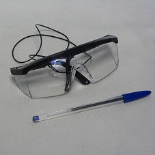PAR DE ÓCULOS DE PROTEÇÃO, DA MARCA 'POMP VISION 3000', COM VISOR ÚNICO EM POLICARBONATO TRANSPARENTE E ARMAÇÃO PRETA E HASTES AJUSTÁVEIS. POSSUI NOME DA MARCA GRAVADA NA ARMAÇÃO. ACOMPANHA CORDA EM PLÁSTICO PRETO FIXADA NAS HASTES. ACONDICIONADO EM EMBALAGEM PLÁSTICA DO FABRICANTE.