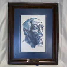 QUADRO (82X66,5 CM) COM MOLDURA EM MADEIRA, TAMPO DE VIDRO E PASSE-PARTOUT NA COR AZUL. AO CENTRO, GRAVURA EM SERIGRAFIA (47,5X,32 CM) EM TONS DE AZUL E PRETO, RETRATANDO O ROSTO DE ELOY ALFARO DELGADO. NA PARTE INFERIOR DA MOLDURA, PLACA METÁLICA COM A INSCRIÇÃO 'ECO. RAFAEL CORREA DELGADO / PRESIDENTE CONSTITUCIONAL DE LA REPUBLICA DEL ECUADOR / 2009-2013'. NA PARTE POSTERIOR , FOLHETO COLADO COM BREVE BIOGRAFIA DO AUTOR E CERTIFICADO DA PEÇA; E CARIMBO COM DADOS DA MESMA. GRAVURA NUMERADA EM '15/175/2009', COM OBRA DATADA DE '1988'.