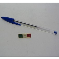 BÓTON (10X30 MM) CONFECCIONADO EM METAL DOURADO, COM FRENTE ESMALTADA E RESINADA, REPRESENTANDO A BANDEIRA DO MÉXICO.