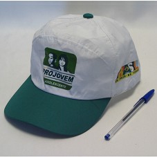 DOIS BONÉS IGUAIS, EM TECIDO BRANCO, COM ABA VERDE. NA FRENTE, ESTAMPA DO 'PROJOVEM ADOLESCENTE'. NAS LATERAIS, LOGOMARCA DO GOVERNO FEDERAL E DA PREFEITURA MUNICIPAL DE SOBRAL.