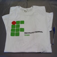 CAMISETA (TAM GG) EM MALHA BRANCA, DE MANGA CURTA. NA FRENTE, ESTAMPA DO 'INSTITUTO FEDERAL DE EDUCAÇÃO, CIÊNCIA E TECNOLOGIA / CEARÁ'. ATRÁS, 'WWW.IFCE.EDU.BR'.