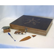 ESTOJO DE MADEIRA (5X37X29 CM), COM DESENHO ESTILIZADO DE UM SOL NA TAMPA. NA PARTE INTERNA, TEXTO EM PAPEL COLADO NA TAMPA APRESENTANDO O BRINDE (ARTESANATOS DA RORAIMA). ACOMPANHA UM PEN-DRIVE (3,5X10,5 CM), NO FORMATO DE UMA ESCULTURA DE TAMANDUÁ, EM MADEIRA MUIRACATIARA; UM MARCADOR DE PÁGINA (16,5X4 CM), CONFECCIONADO EM MADEIRA E FIBRA DE BURITI, NO FORMATO DE UMA CANOA INDÍGENA, COM GRAVURAS DE PÁSSARO E MACACO (PINTURA RUPESTRE); UMA ESCULTURA (3X9,5X2,5 CM) DE TAMANDUÁ EM PEDRA ACINZENTADA, ACOMPANHANDO BASE DE MADEIRA (CHEGOU DESCOLADO DA BASE). NA TAMPA, CARTÃO DE VISITA DO AGENTE.