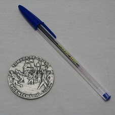 MEDALHA COMEMORATIVA DOS 200 ANOS DA TOMADA DE CAIENA (50 MM), CONFECCIONADA EM PRATA 900, NUMERADA EM '0010'. NO ANVERSO, CENA REPRODUZIDA DO QUADRO DO ARTISTA ÁLVARO MARTINS, INTITULADO 'DESEMBARQUE EM CAIENA', TENDO ACIMA A LEGENDA 'TOMADA DE CAIENA'; E, ABAIXO, BICENTENÁRIO - 2009'. NO REVERSO, BANDEIRA DA BRIGADA REAL DA MARINHA, TENDO AO CENTRO O BRASÃO DE ARMAS DO REINO DE PORTUGAL E ALGARVES ENCIMADO PELA COROA REAL; CONTORNANDO O BORDO, A LEGENDA 'BATISMO DE FOGO DOS FUZILEIROS NAVAIS'. ACOMPANHA CERTIFICADO DE AUTENTICIDADE. ACONDICIONADA EM ESTOJO FORRADO DE VELUDO PRETO.