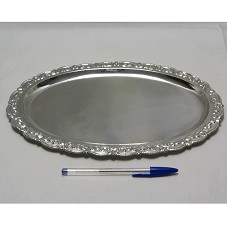 BANDEJA / BAIXELA (31,8X22 CM) CONFECCIONADA EM PRATA, DE FORMATO OVAL, COM BORDAS ELEVADAS E TRABALHADAS COM MOTIVOS FLORAIS E ARABESCOS. ACOMPANHA CARTÃO EM NOME DO AGENTE.