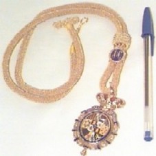 MEDALHA DE HONRA AO MÉRITO DA CÂMARA DOS DEPUTADOS DA ESPANHA, COMPOSTA POR UM MEDALHÃO EM METAL DOURADO, PRESO A UM CORDÃO FEITO POR ENTRELAÇAMENTO DE FIOS DOURADOS. NO CENTRO DO MEDALHÃO, O BRASÃO DA ESPANHA, RODEADO POR OUTROS, E CIRCUNDADO POR UM CÍRCULO AZUL MARINHO COM BORDAS DOURADAS. BORDA DA INSÍGNIA COM CONJUNTO DE DETALHES DOURADOS, INTERCALADOS POR OUTROS NAS CORES VINHO/AZUL/VINHO, TENDO EM CIMA, UMA FAIXA AZUL COM INSCRIÇÃO 'CONGRESO DIPUTADOS' E UMA COROA REAL EM DOURADO E ESMALTADO VINHO. ATRÁS, GRAVADO 'A S.E. LULA DA SILVA / PRESIDENTE DE LA REPUBLICA FEDERATIVA DE BRASIL / 16-VII-2003'. NO CORDÃO, PRÓXIMO AO MEDALHÃO, UM PRENDEDOR EM METAL DE FORMA OVAL, COM CENTRO EM AZUL MARINHO E 'JIC' INSCRITO EM DOURADO, BORDAS DOURADAS E COROA NA PARTE SUPERIOR. ACONDICIONADO EM CAIXA (11X14X4 CM) NA COR VINHO, COM DETALHES EM DOURADO.