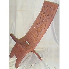 CADEIRA TIPO ESPREGUIÇADEIRA (133X43X52 CM) EM MADEIRA. ENTALHADA COM DESENHOS ABSTRATOS, TENDO NO ENCOSTO ALGUMAS PARTES VAZADAS. ENCOSTO E ASSENTO MONTADO EM FORMA DE ENCAIXE, FAZENDO A CADEIRA ABRIR E FECHAR.