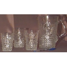 CONJUNTO PARA SUCO COMPOSTO POR: DOZE COPOS GRANDES, DOZE COPOS MÉDIOS, DOZE COPOS PEQUENOS E UMA JARRA. POSSUI DESENHOS EM ALTO RELEVO, TENDO NA BASE E PARTE INFERIOR DO CORPO, CONJUNTO DE SEMI-ESFERAS; E, ACIMA DELAS, DESENHOS COM MOLDURA OVAL. ACONDICIONADOS EM SETE CAIXAS DE PAPELÃO (14,5X14,5X21 CM / 17X25X11 CM / 22X16X9 CM / 17,5X25X13 CM / 17X25X17 CM). ACOMPANHA CARTÃO , TENDO ESCRITO NO ENVELOPE 'EXMO. SRS. PRESIDENTE LUIS INÁCIO LULA DA SILVA E SENHORA MARISA LETÍCIA LULA DA SILVA'; E, NO CARTÃO 'COM A ESTIMA / MARIA HELENA GREGORI / JOSÉ GREGORI / LISBOA 9/7/2003'.