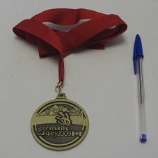 MEDALHA WORLD SKILLS CALGARY 2009 (65 MM) CONFECCIONADA EM BRONZE. NO ANVERSO, A INSCRIÇÃO 'WORLD SKILLS CALGARY 2009' E DESENHO COM PERFIL DE UMAS MONTANHAS; NO REVERSO, 'WORLD SKILLS INTERNATIONAL'. PRESA À FITA VERMELHA. ACONDICIONADA EM ESTOJO DE MADEIRA, COM MESMA INSCRIÇÃO NA TAMPA, E DESENHO DA BANDEIRA DO CANADÁ.