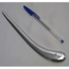 ESPÁTULA / ABRIDOR DE CORRESPONDÊNCIAS (22 CM) CONFECCIONADO EM METAL PRATEADO. POSSUI, EM UM DOS LADOS, DESENHO DO MAPA DO BRASIL E A INSCRIÇÃO 'ETC.'. ACOMPANHA CARTÃO DE VISITA DO AGENTE. ACONDICIONADO EM CAIXA RETANGULAR DE PAPELÃO PRETO.