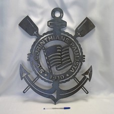 EMBLEMA / BRASÃO (55,5X41 CM) DO TIME DE FUTEBOL 'S.C. CORINTHIANS PAULISTA', CONFECCIONADO EM CHAPA DE FERRO.