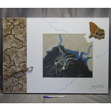 QUADRO (50X70 CM) SEM MOLDURA, COM PINTURA SOBRE TELA FIXADA EM CHASSIS DE MADEIRA. PINTURA SOBRE FUNDO BRANCO, TENDO, AO CENTRO, DESENHO DE DUAS MÃOS SEGURANDO O GLOBO AZUL DA BANDEIRA BRASILEIRA PARTIDO AO MEIO; DA BANDEIRA IRRADIAM VEIOS AZUIS QUE SE TRANSFORMAM EM ÁGUA CORRENDO POR TERRA ÁRIDA. NA LATERAL ESQUERDA DA TELA, REPRESENTAÇÃO DO SEMI-ÁRIDO, COM ESPINHAS DE PEIXE E UMA CORRENTE QUEBRADA. NO CANTO INFERIOR DIREITO, ASSINATURA DO ARTISTA 'FÁBIO DE BRITO'. OBRA NUMERADA EM '1/20'. NA PARTE POSTERIOR, INFORMAÇÕES SOBRE A TELA E DEDICATÓRIA AO PRESIDENTE 'COM SATISFAÇÃO, AO PRESIDENTE DA REPÚBLICA EXMO LUIZ INÁCIO LULA DA SILVA / 12/2008'.