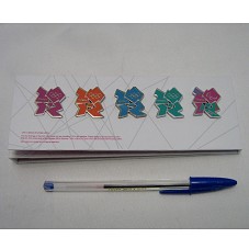 CINCO BÓTONS (25X23 MM CADA) EM METAL PRATEADO, CADA UM COM O ANVERSO PINTADO NAS CORES ROSA, LARANJA, AZUL E VERDE E, O ÚLTIMO, COM TODAS ESSAS CORES. BÓTON COM A LOGOMARCA DAS OLIMPÍADAS DE 2012, REPRESENTANDO OS NÚMEROS DESSE ANO DE FORMA ESTILIZADA, COM OS ELOS OLÍMPICOS NO NÚMERO '0' E A INSCRIÇÃO 'LONDON' NO PRIMEIRO NÚMERO '2'. O BÓTON COLORIDO TEM AINDA A GRAVAÇÃO 'PARALYMPIC GAMES' E SÍMBOLO. ACONDICIONADOS EM EMBALAGEM DE PAPELÃO FORRADO DE PAPEL BRANCO, COM DESENHO DOS BÓTONS NA PARTE FRONTAL, E, NA POSTERIOR, NUMERAÇÃO '000262'.