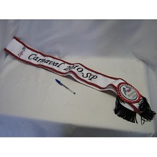 FAIXA (10X184 CM) EM TECIDO BRANCO, COM BORDA EM VERMELHO E FRANJAS PRETAS NAS EXTREMIDADES. POSSUI A INSCRIÇÃO BORDADA, EM PRETO E VERMELHO, 'LIGA -SP / CARNAVAL 2010 - SP'. PRÓXIMO À EXTREMIDADE, ROSETA COM A INSCRIÇÃO 'LIGA / PRESIDENTE LULA'.