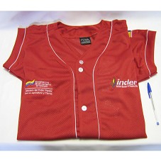 CAMISA (TAM XL) EM TECIDO VERMELHO, DE MANGA CURTA, COM BOTÕES FRONTAIS. POSSUI, NA FRENTE, BORDADO COM A INSCRIÇÃO 'GOBIERNO BOLIVARIANO DE VENEZUELA / MINISTERIO DEL PODER POPULAR PARA LA AGRICULTURA Y TIERRAS / INDER / INSTITUTO NACIONAL DE DESARROLLO RURAL'. ATRÁS, O NÚMERO '45' E O NOME 'LULA'. NAS MANGAS, 'UNIDOS POR UNA VENEZUELA SIN DROGAS' E 'VENEZUELA A HORA ES DE TODOS'.