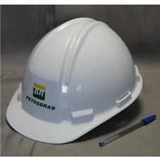 CAPACETE DE PROTEÇÃO, UTILIZADO EM CONSTRUÇÃO CIVIL, NA COR BRANCA, COM LOGOMARCA E NOME DA 'PETROBRÁS', NA PARTE FRONTAL. POSSUI AJUSTES INTERNOS.