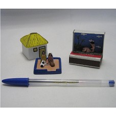 DOIS ARTESANATOS. O PRIMEIRO (4,5X4X4 CM) CONFECCIONADO EM CERÂMICA, REPRESENTA UM PRESÉPIO FIXADO NA BASE DE UMA CASA COM PAREDES E TELHADO (BLOCO ÚNICO) ENCAIXADOS NA BASE. O SEGUNDO, CONFECCIONADO DENTRO DE UMA CAIXA DE FÓSFOROS, MOSTRA UM CASAL DE ÍNDIOS EM CENA ERÓTICA. ACONDICIONADOS EM SACO PLÁSTICO.