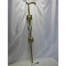 CAJADO (97 CM) CONFECCIONADO EM METAL DOURADO. NO BASTÃO, TRÊS PARALELEPÍPEDOS VAZADOS, DISPOSTOS NA VERTICAL. EM DOIS DELES, NA PARTE INTERNA DE CADA UM, ESCULTURA EM MESMO MATERIAL, LEMBRANDO ANIMAIS MITOLÓGICOS. O PRIMEIRO, PARECENDO UMA ONÇA; O SEGUNDO, UM PEIXE COM CALDA E PATAS.