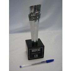 PRÊMIO 'BRASILEIRO DO ANO 2009', CONCEDIDO PELA REVISTA 'ISTO É' E 'EDITORA TRÊS'. ESCULTURA (16,5 CM) EM METAL PRATEADO, EM ALUSÃO A UMA REVISTA ENROLADA, TENDO NA PARTE SUPERIOR A INSCRIÇÃO 'ISTOÉ'. FIXADA EM BASE DE GRANITO PRETO (6,5X7X7 CM), ONDE, NA PARTE FRONTAL, HÁ PLACA METÁLICA PRETA COM A GRAVAÇÃO 'ISTOÉ / LUIZ INÁCIO LULA DA SILVA / BRASILEIRO DO ANO 2009'.
