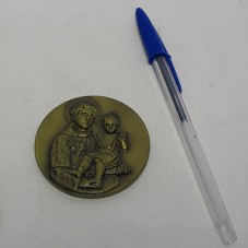 MEDALHA (60 MM) CONFECCIONADA EM BRONZE. NO ANVERSO, EM ALTO RELEVO, IMAGEM DE SANTO ANTÔNIO SEGURANDO O MENINO JESUS. NO REVERSO, DESENHO DA TORRE DO SINO, ASSINADO POR 'CHICO', E A INSCRIÇÃO 'CONVENTO S. ANTÔNIO / 400 ANOS DE HISTÓRIA'. ACONDICIONADA EM ESTOJO FORRADO DE LYCRA VERDE.