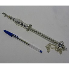 PONTEIRO DE TORAH. VARA (27 CM) CONFECCIONADA EM PRATA 925, POSSUI CORPO TRABALHADO COM FIGURAS DE FLORES, E NA EXTREMIDADE SUPERIOR, MÃO DIREITA COM O DEDO INDICADOR APONTADO PARA FRENTE. NA INFERIOR, CORRENTE PRESA À ARGOLA DE UMA ROSETA. ACONDICIONADO EM ESTOJO DE PAPELÃO BRANCO E ROXO, COM NOME DO FABRICANTE NA TAMPA 'HAZORFIM HOME JEWELLERY'; E ESTE EM SACOLA DE VELUDO VINHO, COM MESMO NOME NAS LATERAIS.