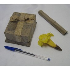 BROCHE (8,5 CM), BIOJÓIA, RÉPLICA DA FLOR DE IPÊ-AMARELO, CONFECCIONADO EM LÁTEX, COM PRENDEDOR EM AÇO INOXIDÁVEL. ACONDICIONADO EM CAIXA DE MATERIAL RECICLADO, NA COR MARROM. ACOMPANHA TEXTO COM INFORMAÇÕES SOBRE A PEÇA E SOBRE A ÁRVORE.