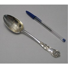 COLHER DE SOPA (19 CM) CONFECCIONADA EM PRATA ENVELHECIDA, COM DESENHO DE UM CACHO DE UVAS E COM CABO TRABALHADO. ACOMPANHA CERTIFICADO DE AUTENTICIDADE, EM ITALIANO, COM NOME DA PEÇA 'BERRY SPOON', DE CERCA DE '1886' DA 'EPOCA REGINA VITTORIA'. ACONDICIONADA EM CAIXA DE PAPELÃO VERDE.
