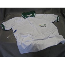 CAMISA (TAM G) GOLA PÓLO, DE MANGA CURTA, NA COR BRANCA E A GOLA VERDE. NA FRENTE, BORDADO NO BOLSO, A LOGOMARCA DA TRANSPETRO E A INSCRIÇÃO 'PRÉ-OPERAÇÃO / GASODUTO URUCU MANAUS / OUTUBRO 2009'. NAS LATERAIS, A INSCRIÇÃO BORDADA 'MALHA NORTE'.