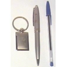 CONJUNTO DE CANETA E CHAVEIRO, EM METAL PRATEADO ESCOVADO, COM DETALHES EM METAL POLIDO, COM A INSCRIÇÃO '50 ANOS BANCO DO NORDESTE' E O SÍMBOLO DO BANCO. ACONDICIONADOS EM CAIXA DE PAPELÃO (7,5X15,5X1,5 CM), NA COR PRATEADA, COM SELO DA COMEMORAÇÃO DOS '50 ANOS BANCO DO NORDESTE' NA TAMPA.