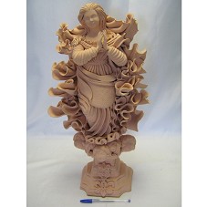 ESCULTURA (53,5 CM) CONFECCIONADA EM ARGILA. IMAGEM DE NOSSA SENHORA DO Ó, SOBRE PEDESTAL COM CABEÇA DE TRÊS ANJOS, E COM AS MÃO EM ORAÇÃO. AO SEU REDOR MANTO CHEIO DE PREGAS. NA PARTE POSTERIOR DO PEDESTAL, A INSCRIÇÃO 'BA-BRASIL / ROZALWO SANTANNA 2009'.