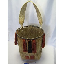 CESTO-CARGUEIRO (CESTA FUNDA) (39,5X32,31 CM) CONFECCIONADO EM TALOS DE BURITI, PROVIDO DE ALÇA PARA CARREGAR NA TESTA. UTILIZADO PARA TRANSPORTE DE CARGAS. ORNADO COM FIOS DE ALGODÃO TINGIDOS. ACOMPANHA ETIQUETA COM DADOS DO PRODUTO.